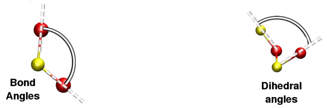 atomes also computes the distributions of bond angles and dihedral angles [Fig. 5.12]: