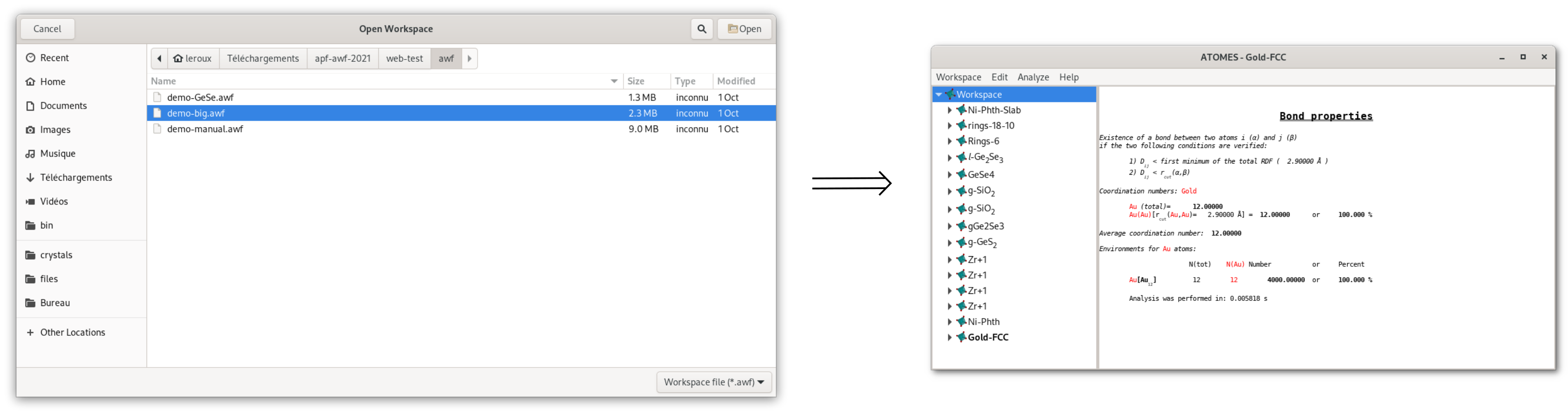 To open atomes workspace file use the "Open Workspace" dialog [Fig. 3.8].