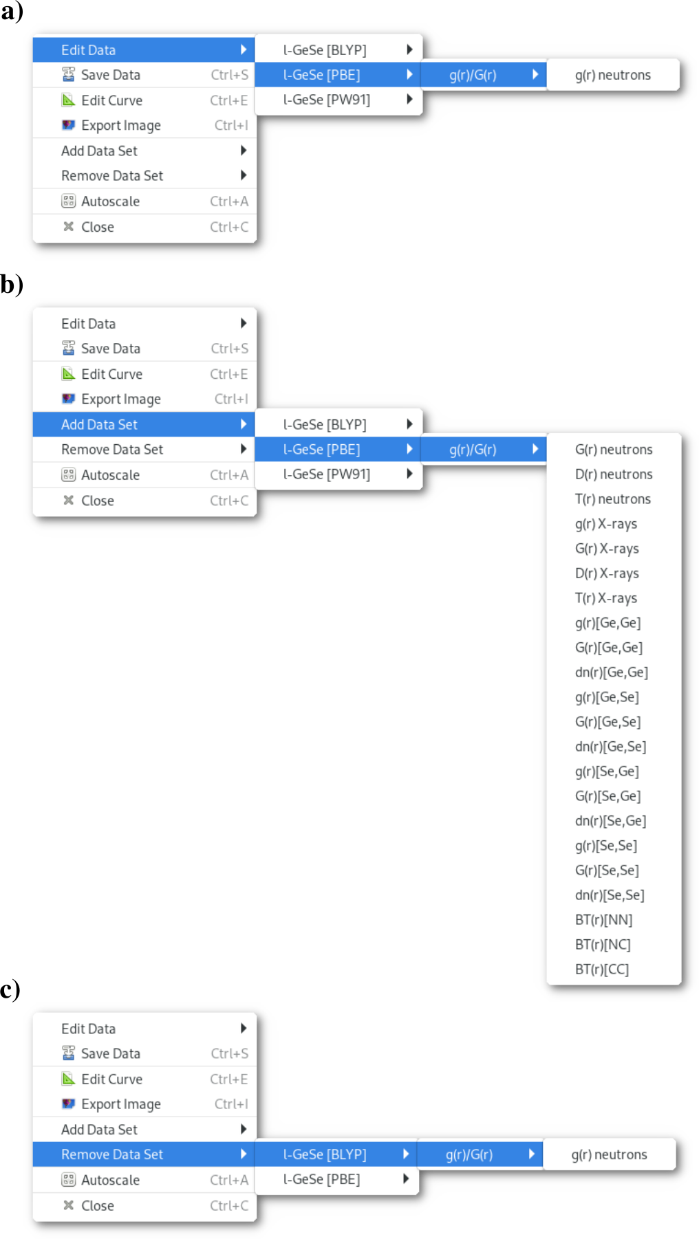 g(r) neutrons" for "l-GeSe [PW91]" project [Fig 4.9-c].Autoscale: offers to autoscale the x and y axis for the entire set(s) of data presented in the graph window.