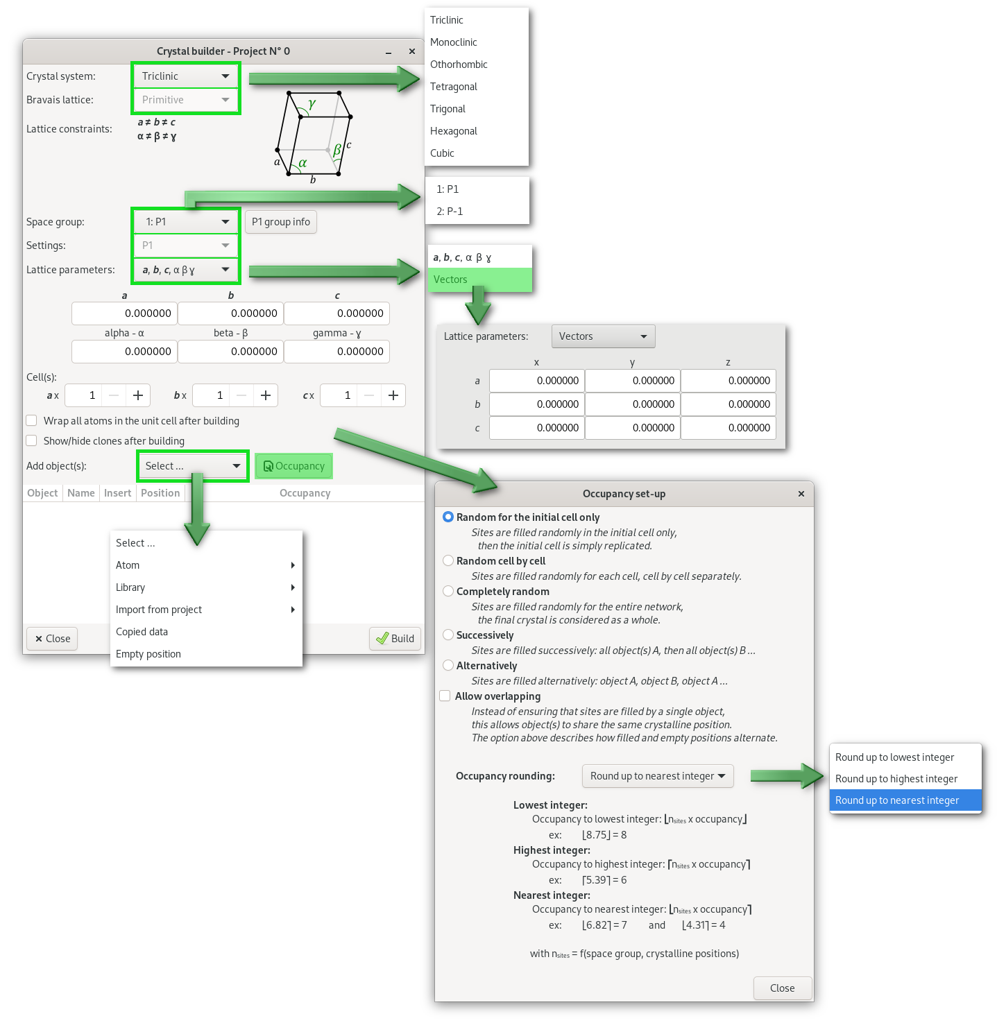 The "Crystal builder" button [Fig. 6.2] allows to open the corresponding window.