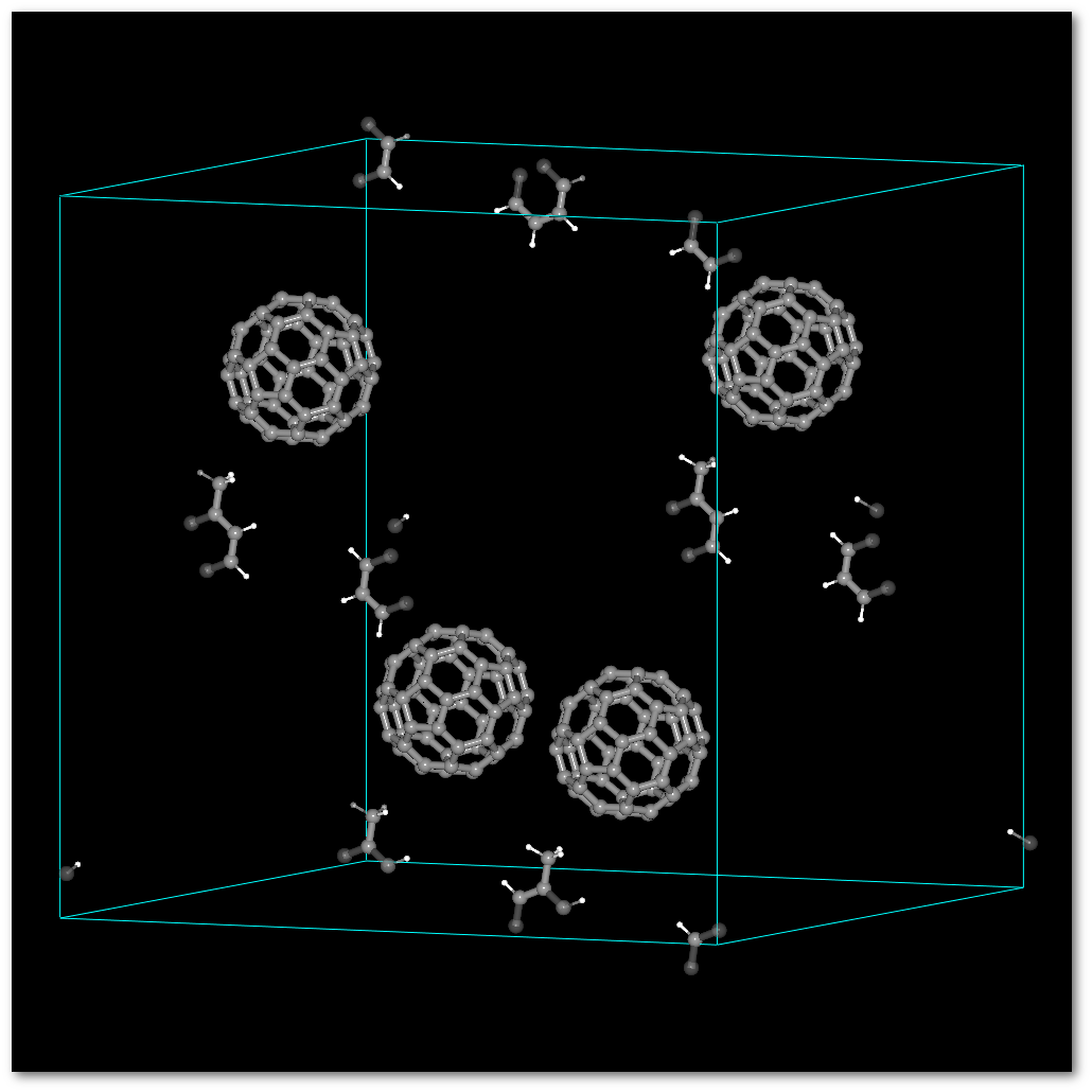 Using C\(_{60}\) fullerene molecules instead of carbon atoms (and increasing the lattice parameter appropriately) allows to obtain the structure illustrated in figure 6.6.