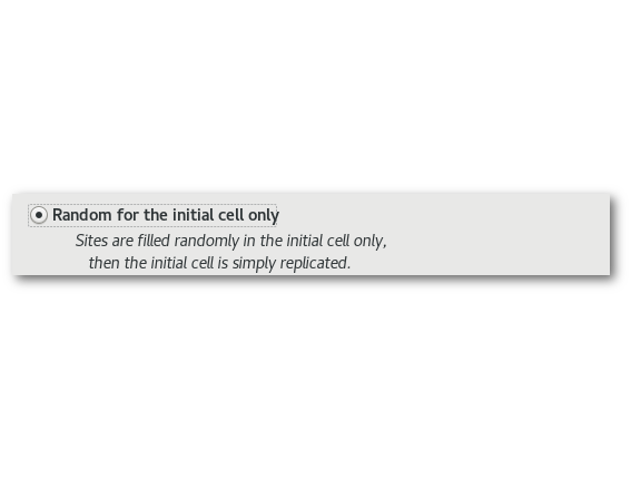Random for the initial cell only": sites are filled randomly in the initial cell only, then the initial cell is simply replicated."