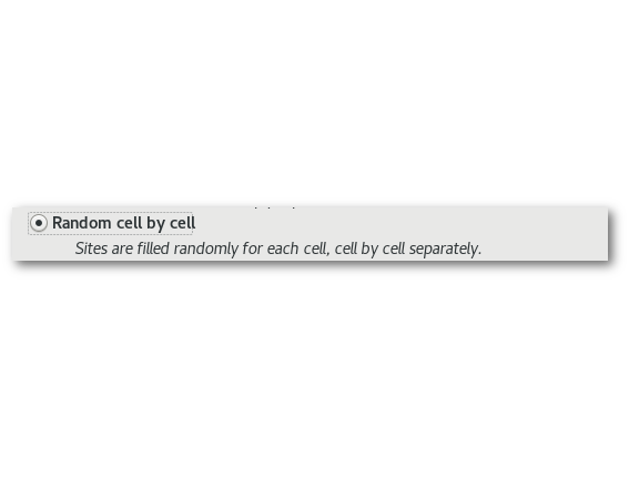 Random cell by cell": sites are filled randomly for each cell, cell by cell separately."