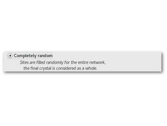 Completely random": sites are filled randomly for the entire network, the final crystal is considered as whole."