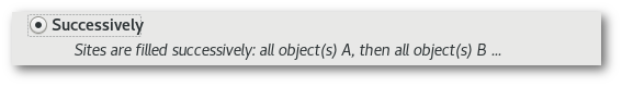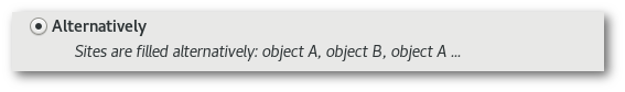 Alternatively": sites are filled alternatively: object A is inserted on the first position, object B is inserted on the second position, object A on the third position, object B on the fourth position ... and so on.