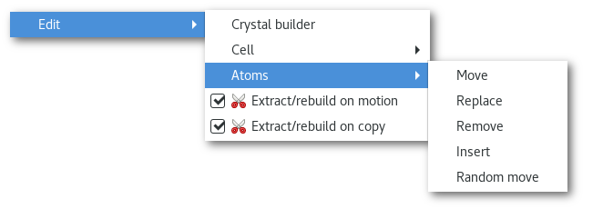 Import from project" submenu [Fig. 6.17-e], to insert atom(s) from any atomes project opened in the workspace.The "