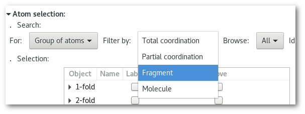 Group of atoms" [Fig. 6.13-2].Filter the selection using the "