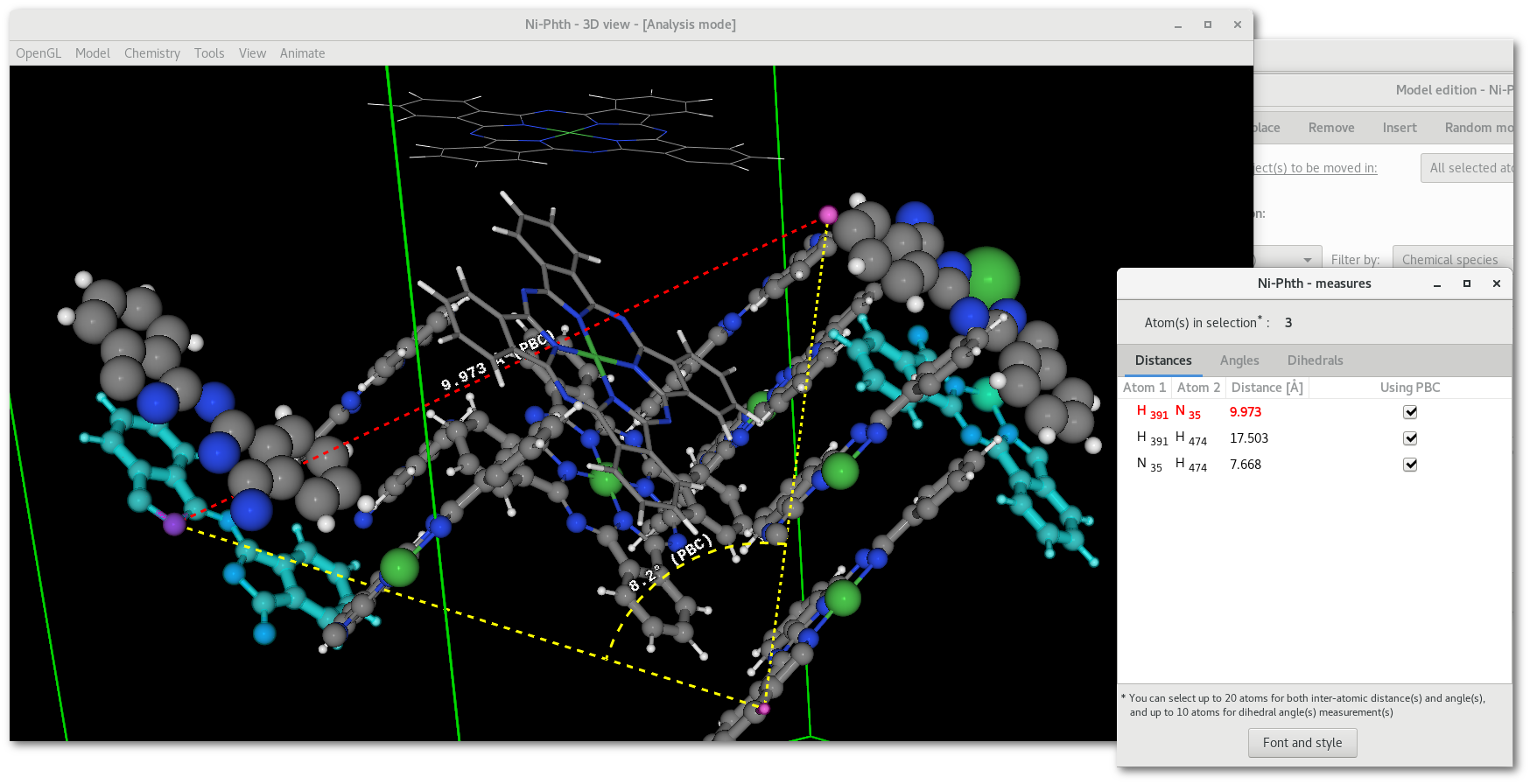 As long as the "Model edition" window remains open, the "Measures" dialog [Fig. 5.10] will only presented measurement(s) related to the new pink atoms.
