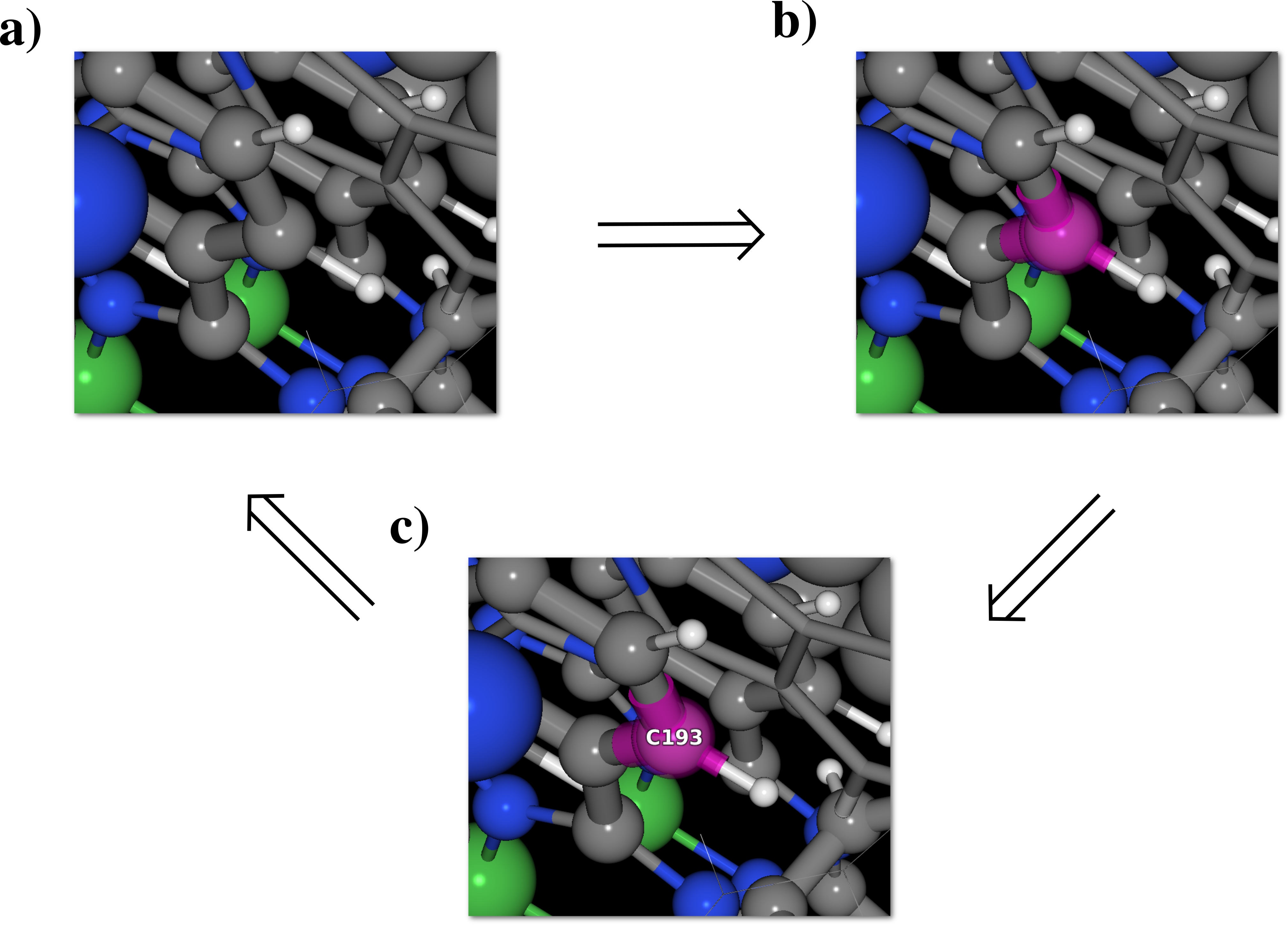 Barycenters: the new object is inserted and centered at the barycenter of the atomic positions of the old object to be removed.