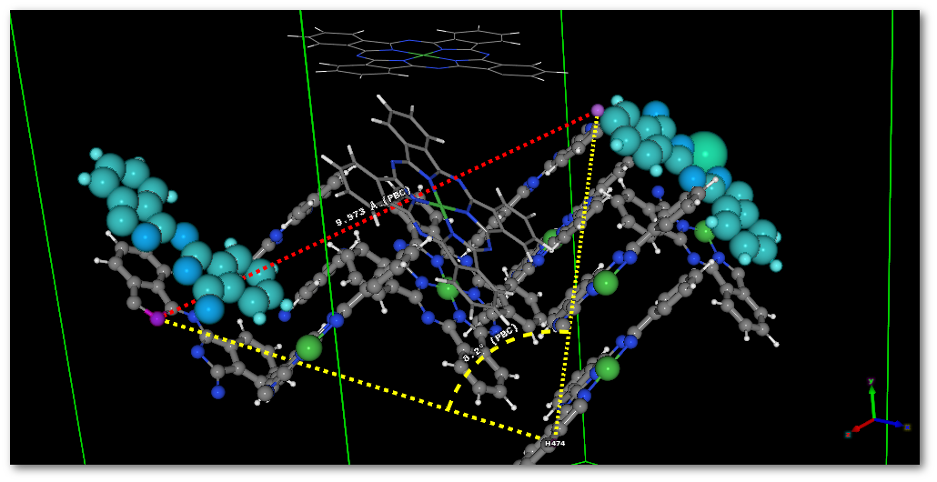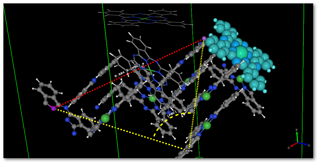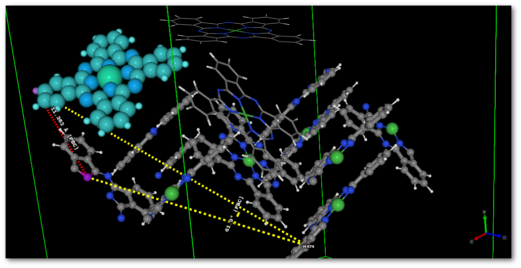 Edition" mode (if not done already) and change the "Mouse selection mode" to "Measures (Edition mode only)". Then select some atoms in the model, and open the "Measures" dialog (see section 5.1.3.2) to display some measurements: